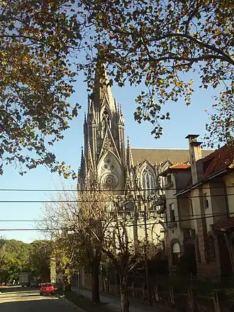 A igreja foi construída em estilo neogótico pelos arquitetos Guillermo Armas e Albérico Isola, entre 1929 e 1954.[2] Foi guardada pelas Carmelitas até 1995, depois foi arrendada à Arquidiocese. A igreja é dedicada a Nossa Senhora do Monte Carmelo e Santa Teresinha de Lisieux .