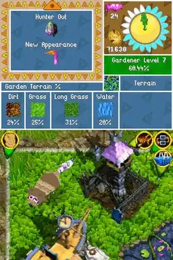 O jogo também faz uso das duas telas do DS onde, na maior parte do jogo, a vista principal do jardim é exibida na tela inferior do DS. Na tela superior, há um painel de informações sensíveis ao contexto[4] isso é exclusivo desta versão do jogo. As informações exibidas mudam dinamicamente para refletir o que está selecionado no momento - desde os requisitos românticos de uma piñata individual até um detalhamento percentual dos pisos do jardim. É ainda possível trocar as telas e interagir com o painel de informações, para visualizar uma enciclopédia abrangente de piñatas, um diário, uma página de prêmios e uma pirâmide de piñatas (entre outras coisas).