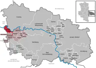 | Localização de Vockerode no distrito de Wittenberg | |