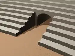 Na arquitetura romana, os vomitórios possuíam, em geral, uma cobertura abobadada feita em concreto. Esta solução evitaria a entrada em contacto entre as diferentes classes sociais, e destinava-se a servir as arquibancadas.