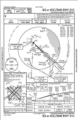 - ↑ «Chicago Midway Runway 31C ILS/DME Approach Chart». Aeronautical Charting Office, Federal Aviation Administration. Instrument Approach Procedures, Illinois & Wisconsin. 24 de novembro de 2005