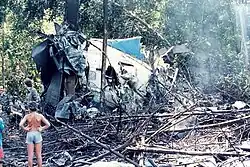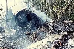 ![]() Parte traseira da aeronave após o acidente. | |