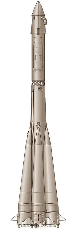 - ↑ Anatoly Zak. «Voskhod launch vehicle». RussianSpaceWeb. Consultado em 30 de julho de 2019