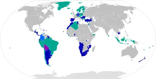 Brasil, Noruega, Islândia, Suécia, Argentina, Dinamarca, Bélgica etc. lista aberta.