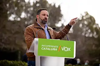 Vox (commumente estilizado em maiúsculas; pronúncia espanhola: [ˈboks]) é um partido político conservador de extrema-direita [22][23][24] da Espanha liderado por Santiago Abascal[25], fundado em dezembro de 2013.[26] O partido define-se de direita, sendo descrito como um partido populista de extrema-direita por académicos. [27] [28][29]