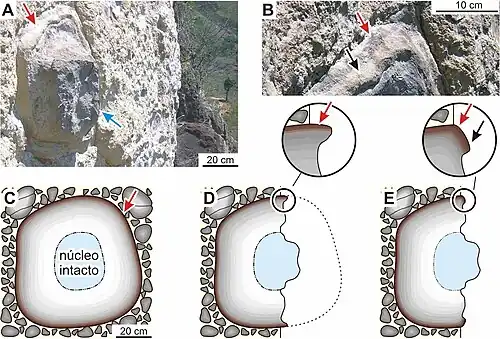 - ↑ a b c Motoki, A., Soares, R., Lobato, M., Sichel, E.S., Aires, J.R. 2007b. Feições intempéricas em rochas alcalinas félsicas de Nova Iguaçu, RJ. Revista Escola de Minas, v. 60, n. 3, p. 451-458.