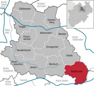 ![]() Wadersloh Mapa da Alemanha, posição de Wadersloh acentuada |