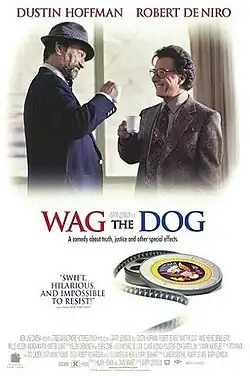 Wag the Dog (No Brasil, Mera Coincidência; Em Portugal, Manobras na Casa Branca) é um filme de comédia de sátira política e humor negro dos Estados Unidos de 1997, produzido e dirigido por Barry Levinson e estrelado por Dustin Hoffman e Robert De Niro.[4] O roteiro diz respeito a um spin doctor e um produtor de Hollywood que fabricam uma notícia falsa sobre uma guerra na Albânia para distrair os eleitores de um escândalo sexual envolvendo o Presidente dos Estados Unidos. O roteiro de Hilary Henkin e David Mamet é uma adaptação cinematográfica do romance American Hero, de Larry Beinhart.[3]