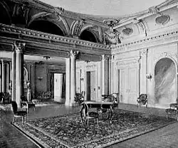 Além da recepção estava um corredor que levava ao Salão Empire, com uma alcova ao lado contendo os elevadores e a grande escadaria. Ali perto existia o Salão Maria Antonieta, que era usada como sala de recepção para as mulheres. Era mobilhada com antiguidades do século XVIII trazidas da Europa em 1892 pelo casal Boldt, incluindo um busto de Maria Antonieta e um relógio antigo que pertencia a ela. O teto tinha afrescos por Will Hicok Low, com o principal sendo O Nascimento de Vênus.[65] O Café dos Cavalheiros era mobiliado com "painés de carvalho negro robustos, murais e candelabros de chifres de veado".[66]