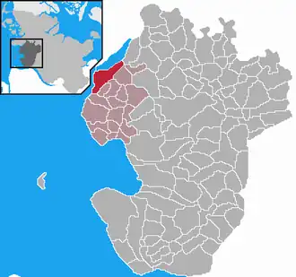 | Localização de Wesselburenerkoog no distrito de Dithmarschen | |