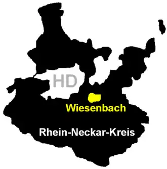 | Localização de Wiesenbach no distrito de Rhein-Neckar-Kreis | |