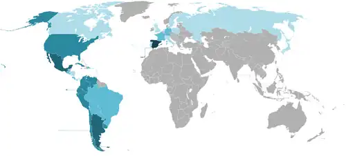 Os países com mais usuários da wikipédia espanhola são a Espanha e a Argentina, os Estados Unidos são o país não castelhano com mais usuários dessa Wikipédia.