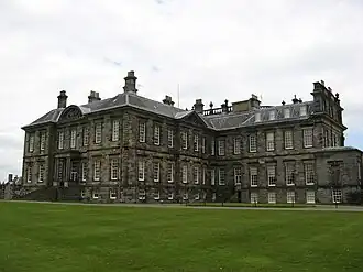 Carlos II criticou os planos iniciais de Bruce para o esboço interno, e um esquema melhor foi finalmente aprovado. A construção começou em julho de 1671, e por 1674 a maior parte do trabalho foi completada. Ele construiu uma segunda torre gótica para espelhar a existente construída por Jaime IV entre 1498 e 1501, e criou o bloco do pátio em estilo clássico contido.[1] A segunda fase do trabalho iniciada em 1676, quando o Duque de Lauderdale lhe ordenou a demolir e reconstruir a fachada oeste principal, resultando em 1679 na parede da tela, encimada por uma coroa imperial esculpida, que constitui a entrada principal.[35]