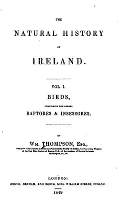 William Thompson (2 de dezembro de 1805, 17 de fevereiro de 1852) foi um naturalista irlandês, celebrado pelos seus estudos pioneiros sobre a história natural da Irlanda, especialmente na ornitologia e na biologia marinha. Thompson publicou numerosas notas sobre a distribuição, acasalamento, ovos, habitat, canto, plumagem, comportamento, ninhos e alimentação de aves, que formaram as bases para os quatro volumes da sua História Natural da Irlanda, e foram muito usados por autores contemporâneos e posteriores a ele, como Francis Orpen Morris.[1]