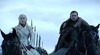 ![]() Daenerys Targaryen e Jon Snow chegando em Winterfell. | |||