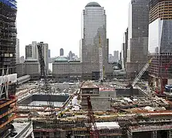 Depois de anos de atraso e polêmica, a reconstrução do World Trade Center está agora bem encaminhada. O novo complexo inclui o One World Trade Center (anteriormente conhecido como "Torre da Liberdade"), o 3 World Trade Center (concluído em 2018), o 4 World Trade Center (finalizado em 2013) e o World Trade Center 7 (inaugurado em 2006), além de outros três edifícios de escritórios, um museu e um memorial e um centro de transportes semelhante em tamanho ao Grand Central Terminal.[7][8] O Memorial do 11/9 está completo e o museu abriu em 2013.[9]