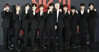 ![]() X1 durante a conferência de imprensa do EP Quantum Leap, realizado em agosto de 2019 (E–D: Do-hyon, Han-gyul, Seung-woo, Seung-youn, Woo-seok, Yo-han, Min-hee, Hyeong-jun, Dong-pyo, Jun-ho e Eun-sang | |