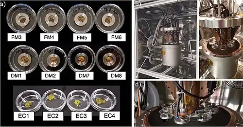 - ↑ Lorenz, Christian; Bianchi, Elisabetta; Benesperi, Renato; Loppi, Stefano; Papini, Alessio; Poggiali, Giovanni; Brucato, John Robert (2022). «Survival of Xanthoria parietina in simulated space conditions: vitality assessment and spectroscopic analysis». International Journal of Astrobiology. 21 (3): 137–153. doi:10.1017/S1473550422000076
