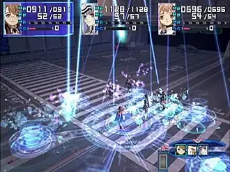 O grupo tem acesso a mechas chamados A.G.W.S., que podem ser equipados ao abrir mão de uma rodada. Esses possuem movimentos próprios e ataques mais poderosos, porém mantém os danos sofridos de uma batalha para outra.[2][3] O grupo é recompensado ao final dos confrontos com dinheiro que pode ser usado para comprar itens e acessórios. Os personagens também recebem pontos de experiência que aumento seus níveis, além de uma variedade de pontos de habilidade. Estes são divididos em Pontos de Éter a fim de melhorar as habilidades relacionadas com éter, junto com Pontos de Habilidade e Pontos de Tecnologia. Os primeiros são usados para ativar efeitos passivos ligados a acessórios, enquanto os segundos aumentam a efetividade e poder de ataques de tecnologia desbloqueados enquanto a experiência dos personagens cresce.[1][2][3]
