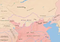 - ↑ Rossabi, Morris (1998). «The Ming and Inner Asia». The Cambridge History of China, Volume 8: The Ming Dynasty, 1398–1644, Part 2. Cambridge: Cambridge University Press. ISBN 9780521243339