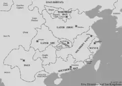 | Shìzong (世宗) | Muito tedioso, portanto, não é usado para se referir a este soberano | Chái Róng | 954–959 | Xiǎndé (顯德) 954–959 |