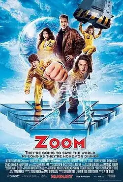 Zoom (Zoom (título em Portugal) ou Zoom: Academia de Super-Heróis (título no Brasil)) é um filme de comédia de aventura estadunidense de 2006 baseado no livro infantil Amazing Adventures from Zoom's Academy de Jason Lethcoe.[7] Dirigido por Peter Hewitt, o filme é estrelado por Tim Allen, Courteney Cox, Chevy Chase, Ryan Whitney Newman, Kate Mara, Spencer Breslin, Michael Cassidy, Kevin Zegers, e Rip Torn. Foi escrito por Adam Rifkin e David Berenbaum. Foi lançado nos cinemas em 11 de agosto de 2006 pela Columbia Pictures. O filme recebeu críticas negativas dos críticos, arrecadou US$12.5 milhões com um orçamento de US$75 milhões e foi um fracasso nas bilheterias.[6] Zoom foi nomeado para um Framboesa de Ouro de pior ator para Tim Allen (também indicado para The Santa Clause 3: The Escape Clause e The Shaggy Dog), mas ele perdeu para os irmãos Marlon Wayans e Shawn Wayans para Little Man. Zoom foi lançado em DVD em 13 de fevereiro de 2007 pela Sony Pictures Home Entertainment.