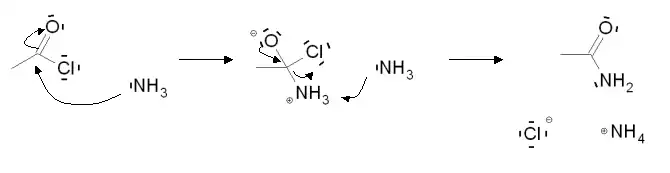 Haletos de acila e anidridos de ácidos carboxílicos asão também comumente usados como agentes de acilação para acilar aminas para formar amidas ou acilar álcoois para formar éteres. As aminas e álcoois são nucleófilos; o mecanismo é adição-eliminação nucleofílica. O ácido succínico é também comumente usado em um tipo específico de acilação chamada succinação. Sobresuccinação ocorre quando mais que um succinato é adicionado a um único composto. Um exemplo industrial de acilação está na síntese de aspirina, na qual ácido salicílico é acilado pelo anidrido acético.