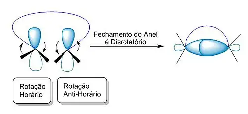 Em um modo disrotatório, movem-se em direções opostas (uma no sentido horário e outra no sentido anti-horário).