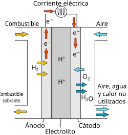A célula de combustível, que gera eletricidade combinando O2 e H2, foi inventada em 1838 por William Robert Grove.[3][4] As células de combustível geram eletricidade através de eletrólise reversa,[5] processo inverso da eletrólise.[6]