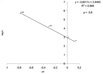 As correlações lineares de energia livre demonstram a interdependência entre a constante de velocidade ou equilíbrio com algum parâmetro estrutural, e são aplicadas com êxito, para um grande número de reações químicas. Um exemplo destas correlações é a equação catalítica desenvolvida por Johannes Nicolaus Brønsted que fornece a relação entre a força de um ácido e a atividade catalítica. O gráfico do logaritmo da constante de reação () versus o logaritmo da constante de ionização () para uma série de ácidos (por exemplo, um grupo de fenóis substituídos ou ácidos carboxílicos) oferece uma linha reta com uma inclinação () e uma constante ().[2]
