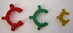 Algumas vezes a aparelhagem de vidro esmerilhado apresenta, a alguns milímetros da junta, pequenos ganchos de vidro, destinados a firmar as partes conectadas por meio de pequenas molas. Mais recentemente entretanto tem-se utilizado os grampos de Keck, patenteados em 1984, por Hermann Keck.