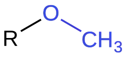 Exemplos de éteres que incluem um metoxilo são o metoximetano, metoxietano e metoxipropano.