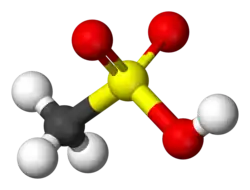 O mais simples exemplo é o ácido metanossulfônico, CH3SO2OH, o qual é um reagente regularmente usado em química orgânica. Ácido p-toluenosulfônico é também um importante reagente.são compostos derivados do ácido sulfúrico.