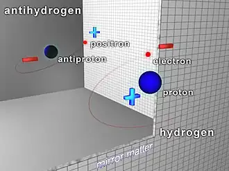 Em 2016, o experimento do A.L.Ph.A. [en] mediu a transição atômica de elétrons entre os dois níveis de energia mais baixos do anti-hidrogênio, 1s – 2s. Os resultados, que são idênticos aos do hidrogênio dentro da resolução experimental, apóiam a ideia de simetria matéria-antimatéria e simetria C.P.T..[5]