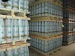 Temperaturas mais altas são uma preocupação maior, porque a possibilidade de uma explosão aumenta à medida que as temperaturas sobem. Um incêndio em uma dessas instalações colocaria em risco a comunidade envolvente, bem como o pessoal nas instalações.[59] Talvez mais à comunidade, tendo muito menos acesso aos equipamentos de proteção e treinamento especializado.[60] O Laboratório Nacional de Oak Ridge realizou um estudo para avaliar as capacidades e os custos para proteger as populações civis durante as emergências relacionadas,[61] a eficácia da experiência e abrigos no local.[62]