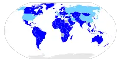 Estados signatários da Convenção sobre as Armas Químicas. Os territórios de cor clara são os países que declararam que têm arsenais de armas químicas ou que se sabe que eles têm instalações de produção de armas químicas.
