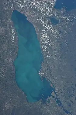 Pequenas cianobactérias (<2 μm de tamanho), conhecidas como picoplâncton, têm sido ligadas a precipitação de carbonato de cálcio em coluna de água. Estes "eventos de clareamento" (do inglês: whiting) podem ocorrer em lagos durante afloramentos sazonais e são responsáveis pela maior parte dos depósitos sedimentares de carbonato no local. Um local bem descrito é em Fayetteville Green Lake em Nova York, onde o crescimento ativo da cianobactéria unicelular Synechococcus sp. durante os meses de verão conduz à formação de calcita na camada extracelular S (Thompson et al., 1990).[7] Os cristais de carbonato são sedimentados através da coluna de água individualmente ou como agregados fracamente estruturados juntamente com células orgânicas, e acumulam-se como camadas de lama de carbonato no leito do lago (Kelts e Hsu, 1978).[7]