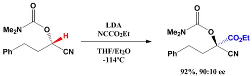 - ↑ Sasaki, Michiko; Tomo. «Enantioselective trapping of an α-chiral carbanion of acyclic nitrile by a carbon electrophile». Chemical Communications (em inglês). 48 (23). doi:10.1039/c2cc00082b