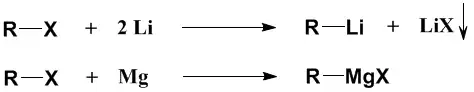 Em geral, um composto organometálico é preparado a partir da reação do composto halogenado com dois equivalentes da carga metálica. Solventes pouco ácidos como o éter etílico, dioxana ou THF secos são empregados para evitar reações colaterais competitivas. Os compostos com metais alcalinos e alcalino-terrosos são as principais fontes de carbânion organometálico.