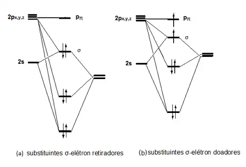 Influência do efeito indutivo na perturbação no diagrama dos orbitais.