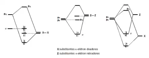 Influência do efeito mesomérico na perturbação no diagrama dos orbitais.