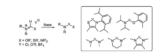 Muitas tentativas foram feitas no passado para preparar compostos em que o oxigênio do monóxido de carbono fosse substituído por dois elementos ou grupos de univalentes átomos. Embora a formação e isolamento de tais compostos não fosse bem sucedida, no entanto, a sua existência apareceu como produtos intermediários em reações químicas. O estudo dessas estruturas só foi possível com o advento de novas técnicas modernas experimentais que permitiram observar-lás como intermediários. Essas espécies divalentes que não apresentam cargas pontuais são derivadas do metileno. Dentre as principais formas de geração de carbenos temos: