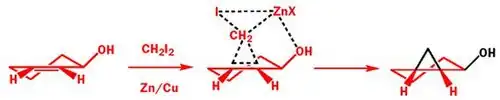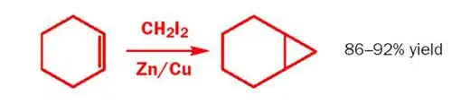 Sendo essa uma evidência conclusiva para a formação do metileno na reação do duplo iodito de metileno e Zinco-cobre, a formação de ciclopropanos na presença de olefinas poderia ser considerada devido a presença de do intermediário metileno. Essa reação ocorre da seguinte maneira, o iodito de iodo metilzinco é regenerado como um complexo de iodeto de metileno e zinco cujo átomo de carbono é eletrofílico e tanto iodeto de zinco é eliminado para dar um metileno de menor energia, ou a ligação dupla de uma olefina elimina o iodito de zinco produzindo o ciclopropano.