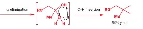 Reações de inserção são processos em que um intermediário reativo, neste caso um carbeno, se interpõem em uma ligação existente geralmente envolvendo ligações C-H.