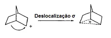 Em todos os estudos teóricos sobre íons carbônio, as estruturas de mais baixa energia têm simetria Cs, justificando a estabilidade dos íons carbônio e sua decomposição aos íons carbênio. Os íons C-carbônio são mais estáveis que os respectivos H-carbônio. Esta ordem de estabilidade pode ser explicada através da distribuição de carga nos átomos e grupos da ligação de 3 centros e 2 elétrons. Os íons carbônio têm papel importante na funcionalização eletrofílica de alcanos, como a nitração, halogenação e oxi-funcionalização. Dois exemplos importantes de íons carbônio são os cátions norbonila e biciclobutônico. O cátion norbonila foi estudado por Wagner[17] e Winstein[18] e Olah, que durante seus estudos verificou que a formação do cátion 2-norbonila σ-deslocalizado a partir de precursores 2-norbonil representa o equivalente a uma σ-alquilação intramolecular, onde a ligação covalente C1-C6 fornece os elétrons para os 3 centros e 2 elétrons ligados em ponte.