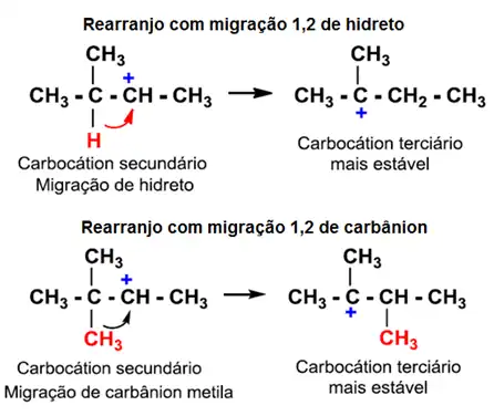 Rearranjo: Pode acontecer com migração de hidreto ou através de migração de metila.