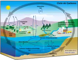 Na ausência da influência antropogênica (causada pelo homem), no ciclo biológico existem três reservatórios ou "stocks": terrestre (20.000 Gt), atmosfera (750 Gt), oceanos (40.000 Gt). Este ciclo desempenha um papel importante nos fluxos de carbono entre os diversos stocks, através dos processos da fotossíntese e da respiração.