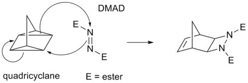 Algumas cicloadições, em vez de ocorrerem a partir de ligações π, operam através de anéis ciclopropano tensos, pois esses têm significativos caráteres π. Por exemplo, um análogo para a reação de Diels-Alder é a reação quadriciclano-DMAD :