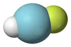 - ↑ «HArF in Solid Argon Revisited: Transition from Unstable to Stable Configuration». The Journal of Physical Chemistry A. 113: 7654–7659. Bibcode:2009JPCA..113.7654B. doi:10.1021/jp810457h