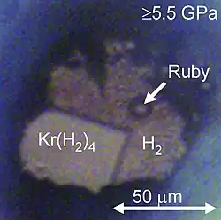 - 1 2 3 «New high-pressure van der Waals compound Kr(H2)4 discovered in the krypton-hydrogen binary system». Scientific Reports. 4. 2014. Bibcode:2014NatSR...4E4989K. doi:10.1038/srep04989